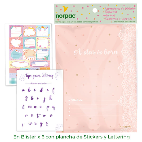 En blister x 6 – Con plancha de Stickers y Lettering
