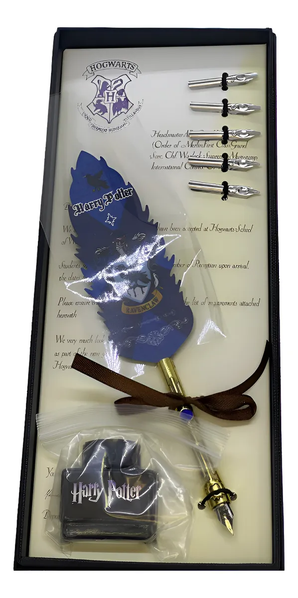 Viene con una pluma, carta de Hogwarts, Depósito de tinta, y cincorepuestos metalicos