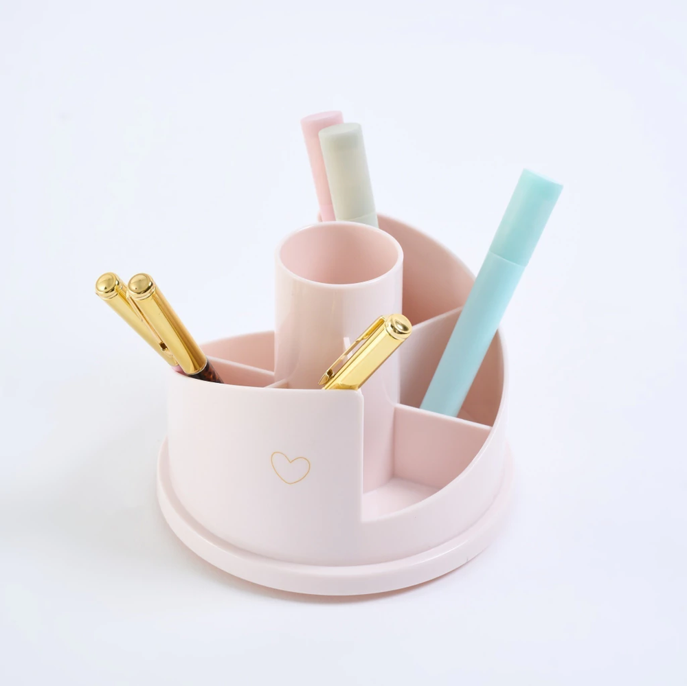 Lapicero de 1 pieza. Tiene 7 espacios contenedores con un sistema giratorio. Ideal para organizar tus lapices o brochas de makeup.