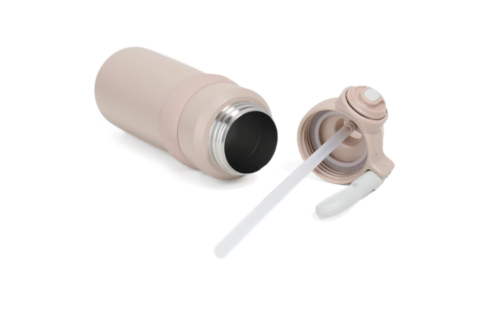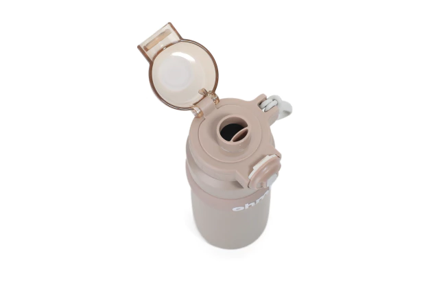Botella deportiva. Cuerpo libre de BPA. Tapa con traba de seguridad, boquilla oculta y botón de apertura automática. Traba de seguridad antiderrame. Manija lateral de silicona integrada. Diseño ergonómico y mate antideslizante. Apta para líquidos fríos y calientes hasta 60 °C.