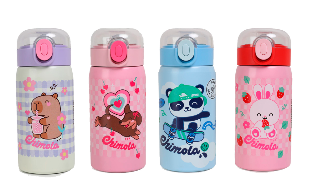 ¡Llevá tu bebida favorita a todos lados con la Botella Cute! Ideal para lxs peques que no paran un segundo. Tiene una capacidad de 350 ml, manija para transportarla fácilmente, base de goma antideslizante y bombilla de silicona con traba en el pico para evitar derrames.Está hecha con acero inoxidable de alta calidad (interior 304, exterior 316) y tiene tapa de PP con cierre hermético, lo que ayuda a conservar la temperatura de las bebidas —frías o calientes— hasta por 6 horas