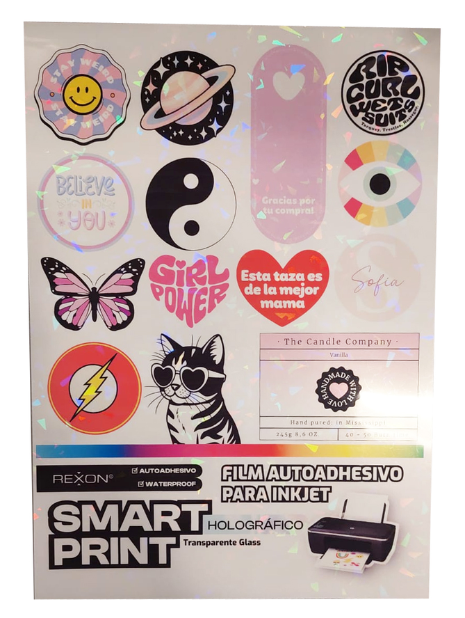 Papel Rexon film ink jet A4 Autoadhesivo transparente hologramado