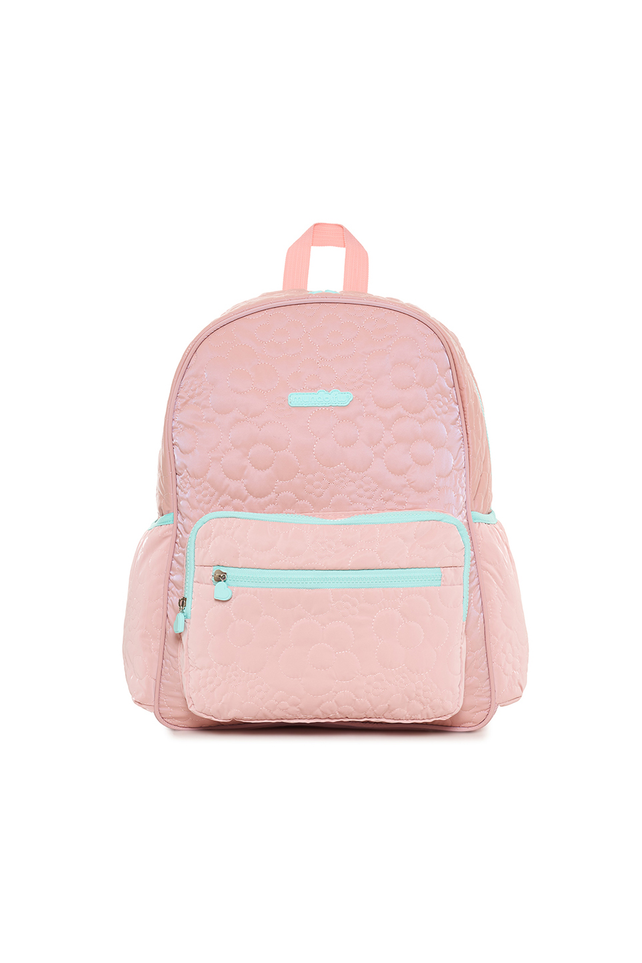 Mochila Pastel Con un diseño suave y femenino, combina practicidad y estilo en cada detalle. Cuenta con un compartimento principal con bolsillo interno para notebook, bolsillo con cierre y clip para llaves, dos bolsillos frontales y dos bolsillos laterales de tela con elástico. Confeccionada en tela matelassé personalizada según el diseño. Su espalda con sistema air mesh.Disponible en tres variantes de color: violeta, rosa viejo y rosa.