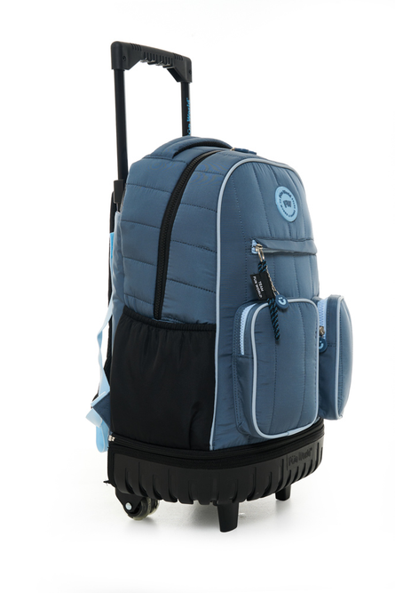 Mochila con carro 18” Squad Confeccionada en tela matelassé, combina textura y estilo en un diseño funcional y moderno. Incluye llavero a tono, varios compartimentos y bolsillos, y dos bolsillos laterales para colocar la botella. El carro es desmontable y reforzado, con dos pares de ruedas dobles que aportan mayor estabilidad y resistencia. Disponible en tres variantes de color: azul, verde y negro. Ideal para acompañar a los niños cada día con comodidad y organización.