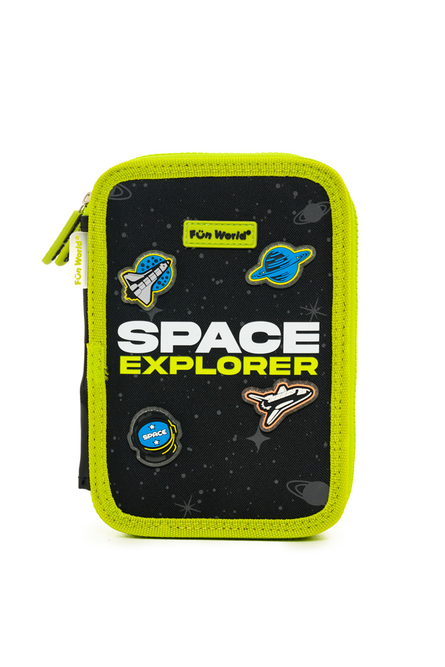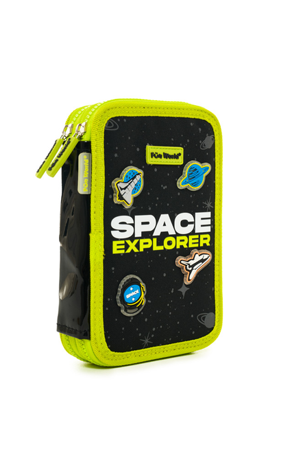 Cartuchera Space 2 Pisos Original y divertida, ideal para los que aman los detalles únicos. Cuenta con 42 elásticos regulares y 2 elásticos anchos, parches de goma que brillan en la oscuridad, name tag y tirador simple. Incluye cierre diente de perro resistente y está disponible en un solo color. Perfecta para organizar tus útiles con estilo y diversión.