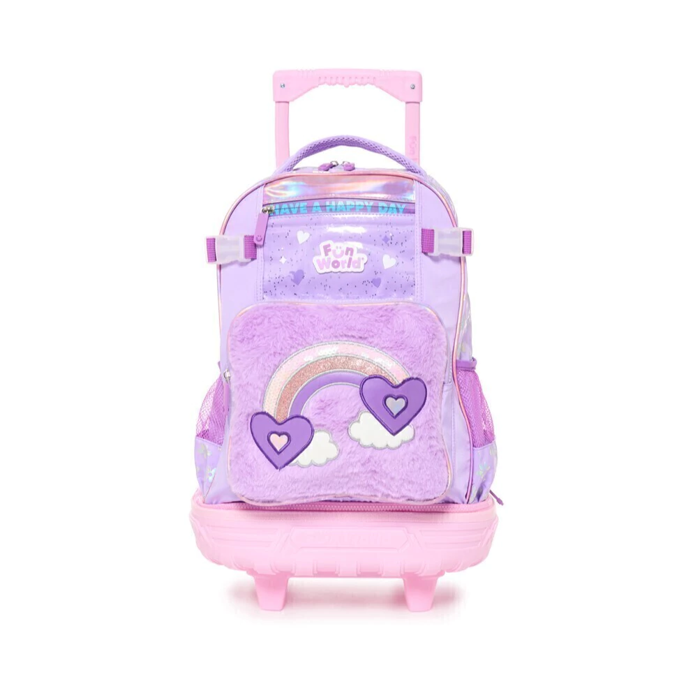 Parches y Bolsillo PVC: Con parches de goma y un bolsillo frontal de PVC con glitter y cierre impreso para guardar objetos a la vista.