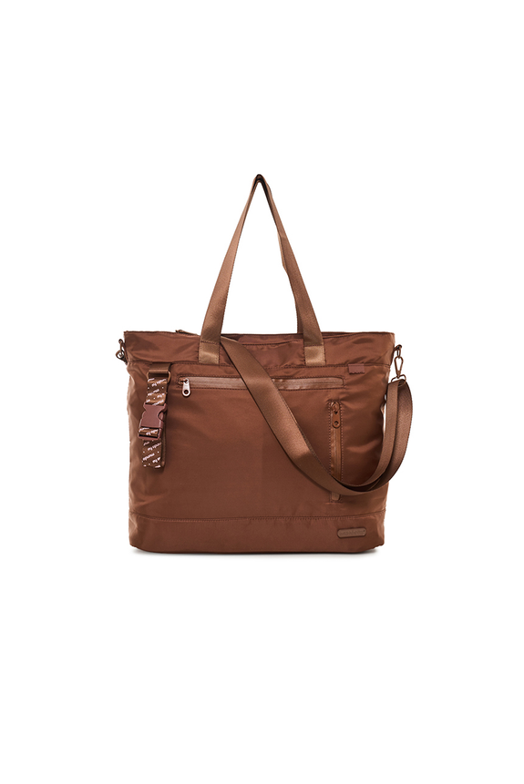 Tote Bag Soho Elegante y práctica, pensada para acompañar la rutina diaria con estilo. Cuenta con compartimento para notebook y un compartimento con divisiones interiores que incluye bolsillo con elástico para botella. Posee dos bolsillos abiertos en el frente, dos bolsillos frontales adicionales, un bolsillo trasero y cinta trasera deslizable para valija. Incluye correa con clip para llaves y accesorio tipo llavero. Disponible en tres colores: verde, negro y marrón.