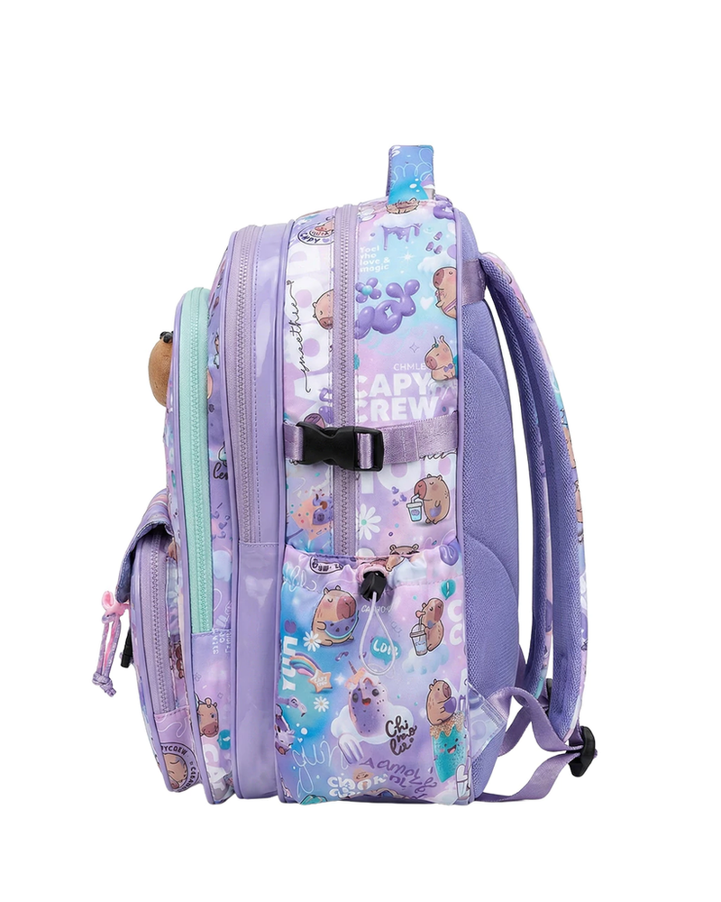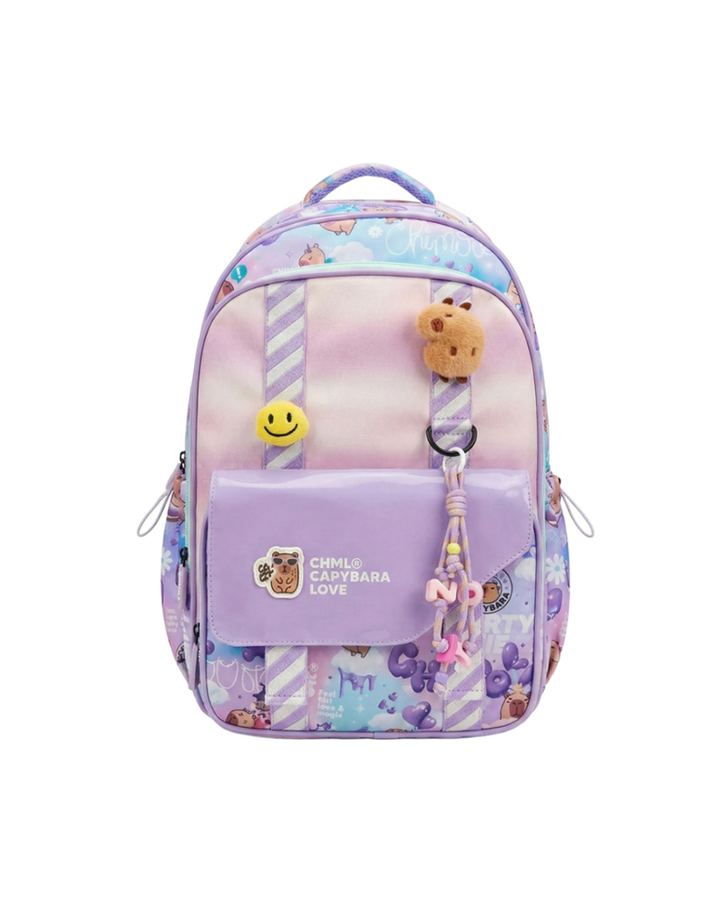 ¡Preparate para brillar en el cole con esta mochila de espalda que es pura diversión! Es súper cómoda para llevar todos tus útiles, tiene tres compartimientos súper amplios, más dos bolsillos a los costados para que lleves tu botella. Imagina esto en tu mochi: ¡Charms que bailan! Tus pasos se llenarán de magia con los charms más lindos que cuelgan y se mueven con vos. ¡Apliques de peluche! Suavecitos y tiernos. ¡No vas a poder dejar de tocarlos!
