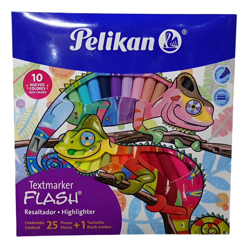 Características: • Punta biselada • 3 anchos de línea (1, 3, 5mm) • 10 nuevos colores • No toxico